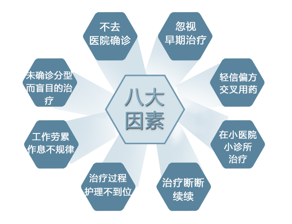 误区一:迫切治疗,胡乱投医。当得知自己得了病之后,患者内心肯定会十分慌张,想要赶快治疗好,到处打听偏方进行治疗或者听信游医进行不正规的治疗,导致病情恶化。其实在这个时候我们应该冷静下来,到正规医院找医生进行诊断治疗,努力把伤害降到低。